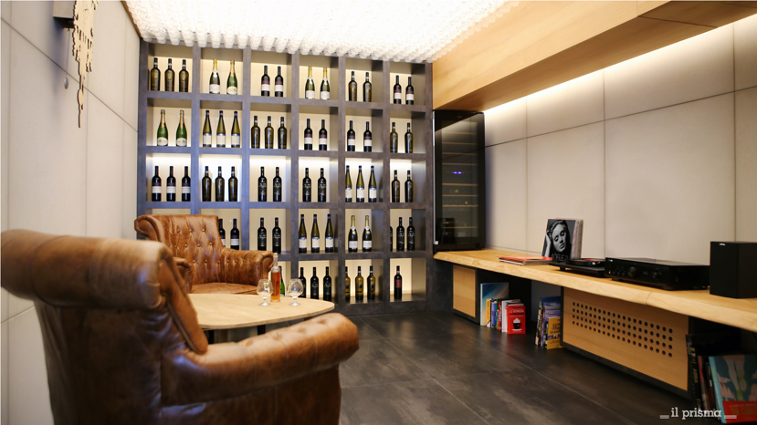 La cave à vins est privilégiée pour des réunions très privées et pour les tâches demandant beaucoup de concentration. Cette pièce permet non seulement de stimuler le goût grâce à la sélection de vin disponible mais également le toucher et l’odorat (les meubles sont en bois de cèdre) ainsi que l’ouïe. Les matériaux naturels ont été privilégiés car ils encouragent le calme et la relaxation. « Nous n’avons pas essayé d’obtenir une formule figée qui permettrait de concevoir des espaces normalisés, explique Elisabetta Pero, mais une méthode pouvant être utilisée pour personnaliser les espaces nécessaires aux tâches effectuées dans l’entreprise. »